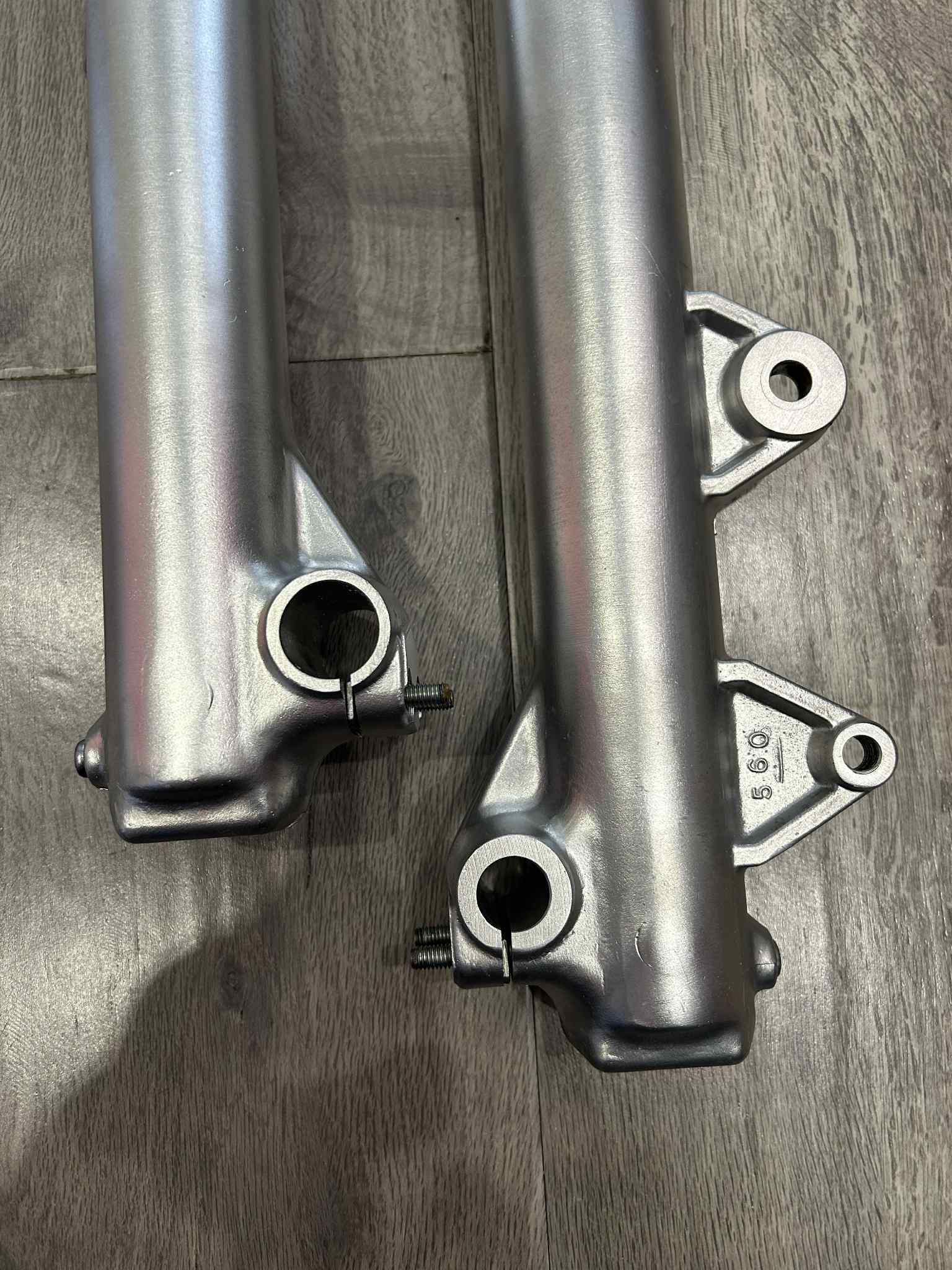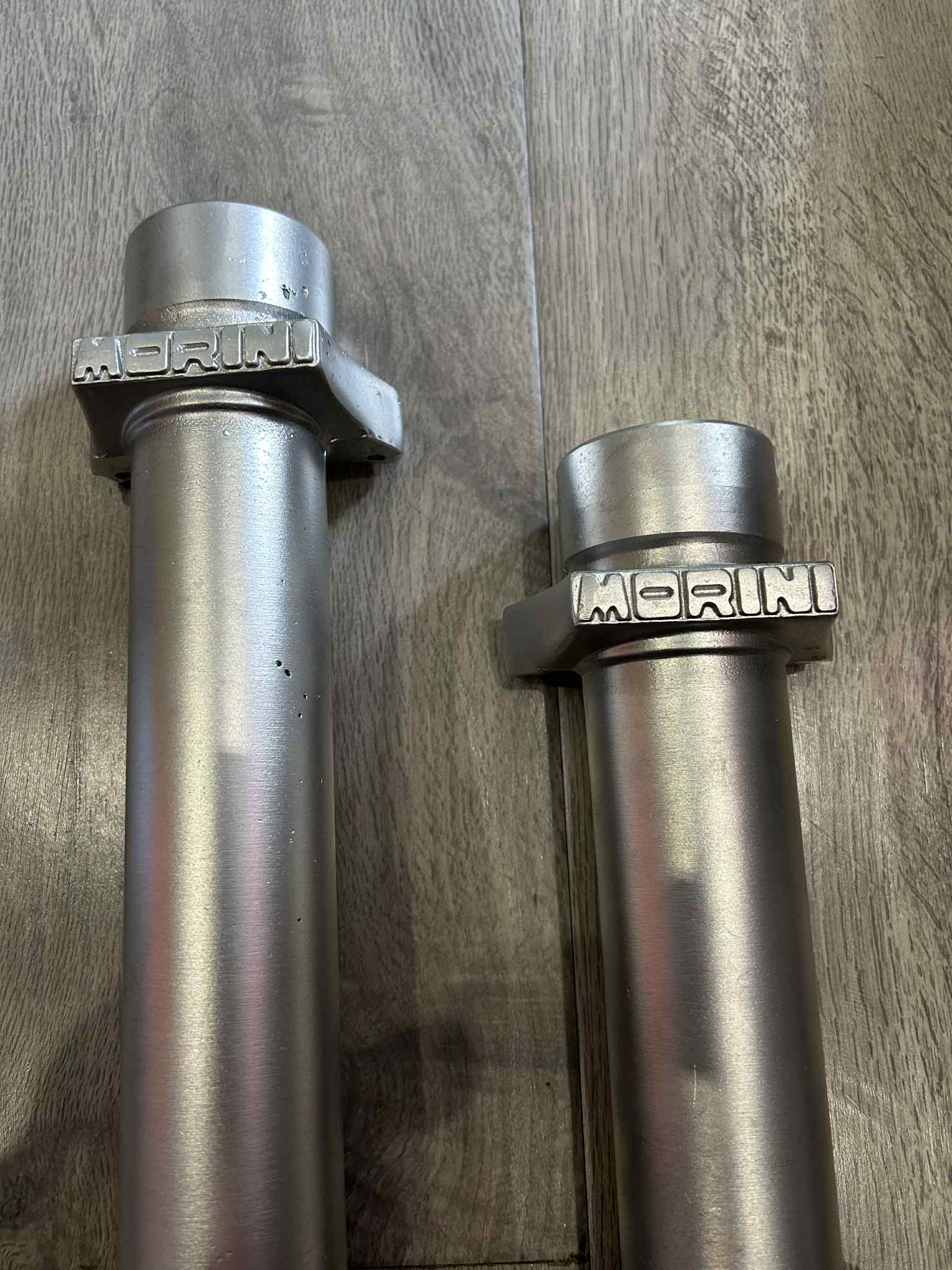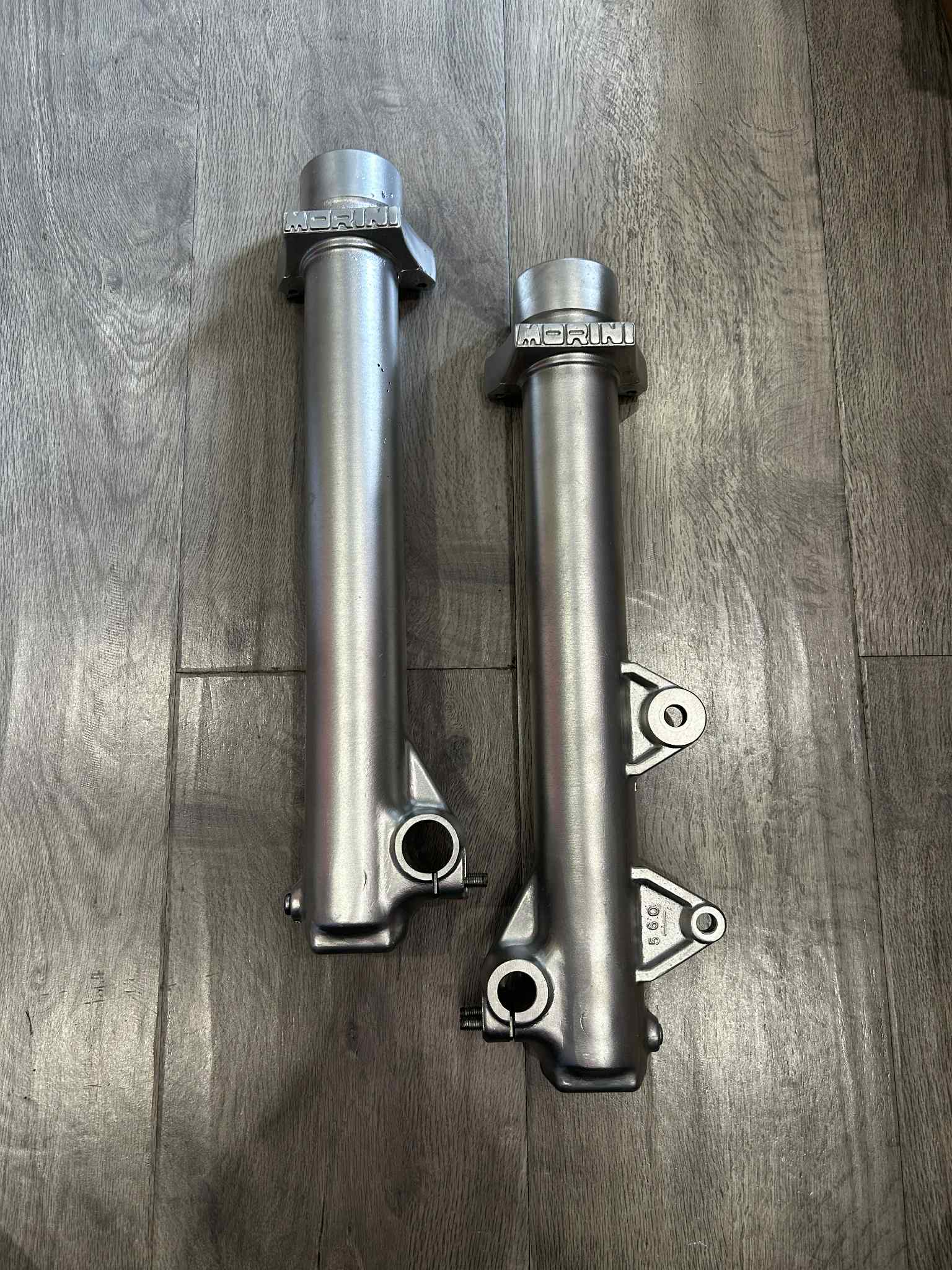 Pair of Marzocchi 38 mm sliders with MORINI cast into each leg
